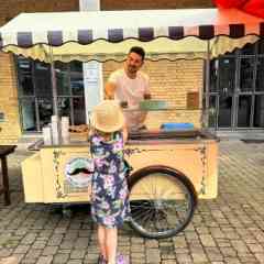 Wir stellen ein phänomenales Milcheis her und beziehen den Rohstoff dazu direkt vom Bauernhof in der Nachbarschaft.Dazu kochen wir richtige Früchte zu Sirup ein