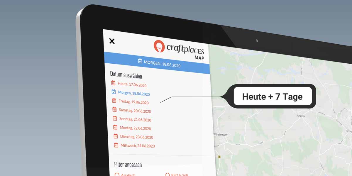Egal wo. Egal wann. Egal auf welchem Gerät. Craftplaces Map zeigt dir den nächsten Foodtruck.